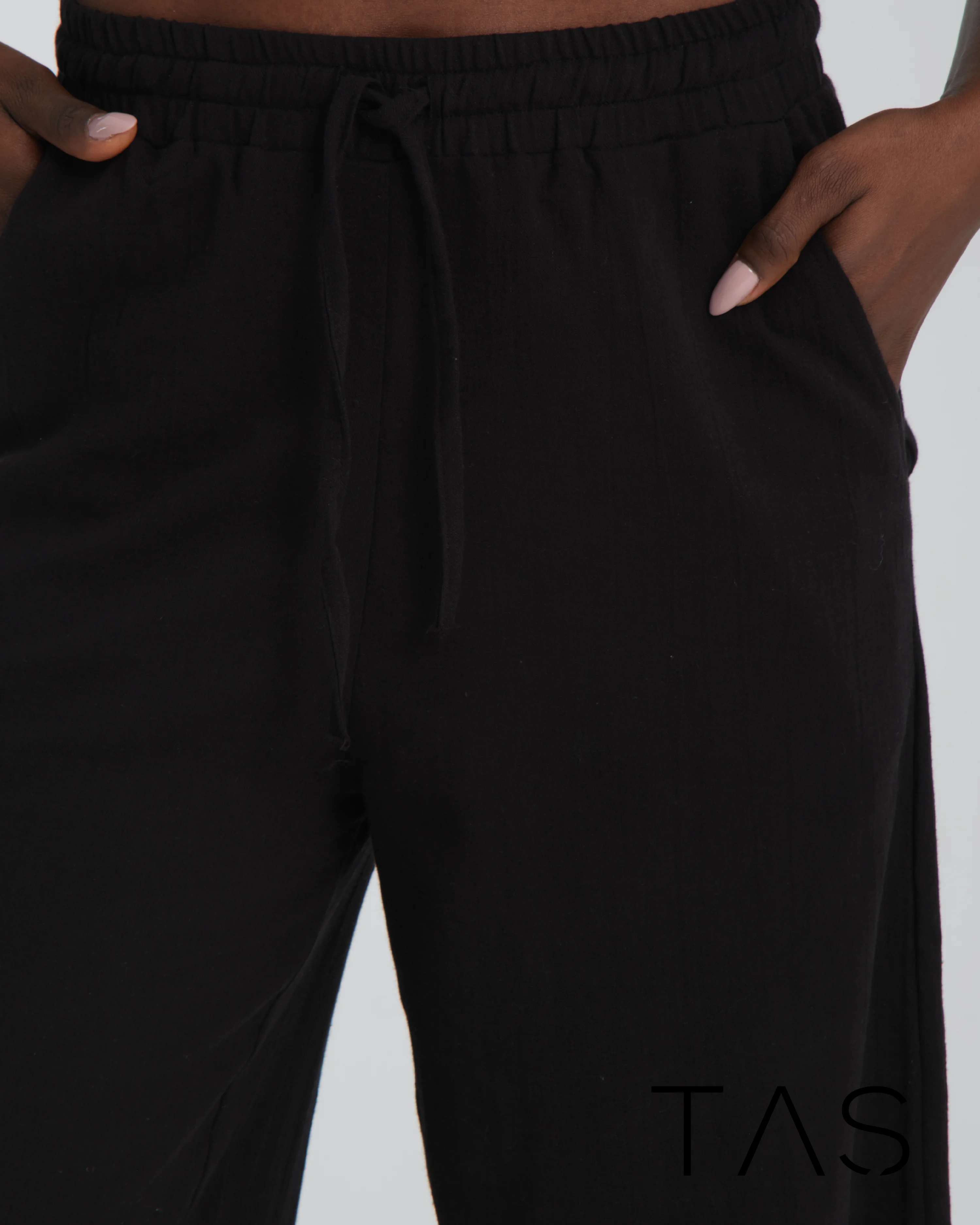 Rahat Kesim Pantolon - Siyah Keten / Pamuk
